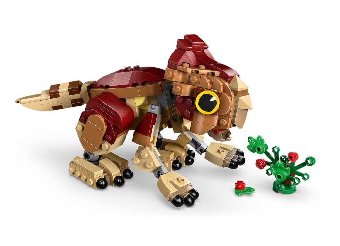 Adventures await kids and fans aged 7 and up who want to start or add to their dinosaur collection with this fun Baby Dinosaur Dolores: Aquilops (76970) LEGO® Jurassic World toy set. This play-and-display building kit features a brick-built baby Aquilops dinosaur figure for kids and a buildable plant with flowers. The Baby Dolores model has a movable head, arms and legs that encourage a range of poses, plus a moving tail and an opening jaw to show her delight when she eats her plant meal. Once playtime is over for the day, this cute dinosaur model can be placed on a shelf or desk to show it off.