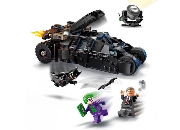 - LEGO® Batman™ Tumbler Batmobile™ – The toy car has a flame element attached to the tailpipe and opens to reveal an instrument panel and cockpit with room for the Batman minifigure