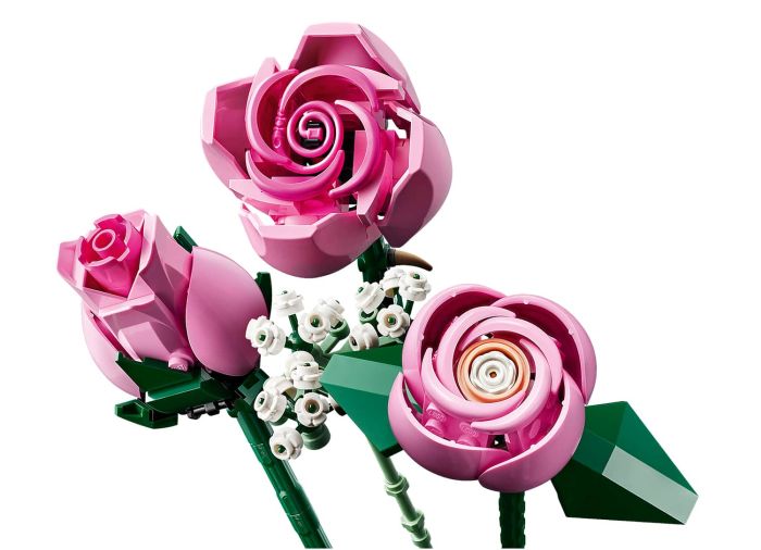 - LEGO® flowers – The set features 4 roses in full bloom, 4 roses blossoming and 4 rosebuds, as well as 4 sprigs of baby’s breath with white flowers