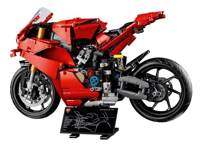 - LEGO® Technic™ Ducati Panigale V4 S Motorcycle – The model is packed with impressive details and authentic features like the front and rear suspension and steering