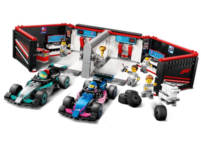 - LEGO® F1® cars garage toy – Bring the thrill of Formula 1® racing to kids’ play with the LEGO City F1 Garage & Mercedes-AMG & Alpine Cars building set for ages 7 and up