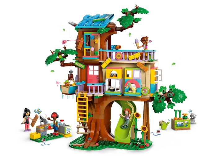 - A set filled with friendship stories – This tree house playset inspires kids to role-play different stories, with spaces for the characters to play, cook and sleep in, plus a veggie patch