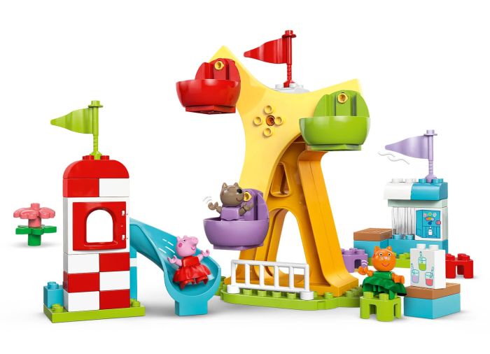 - Amusement park toddler toy – The LEGO® DUPLO® Peppa Pig Funfair toddler toy lets preschool kids learn through play as they enjoy carnival fun with characters from their favorite show