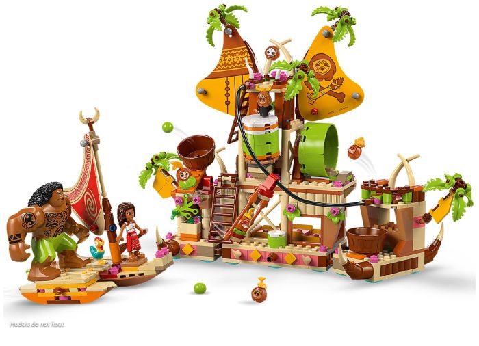 - Moana boat building set – Includes a barge boat with 3 sections and a zipline, a smaller, 2-hulled canoe with storage space, Heihei the chicken, Moana, Maui, Kotu and 5 more LEGO® ǀ Disney characters