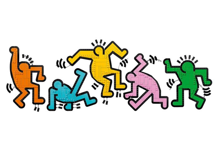 - Celebration of an icon – This brick-built piece of pop art decor is inspired by Keith Haring’s dancing figures, featuring their instantly recognizable bold lines and vibrant colors