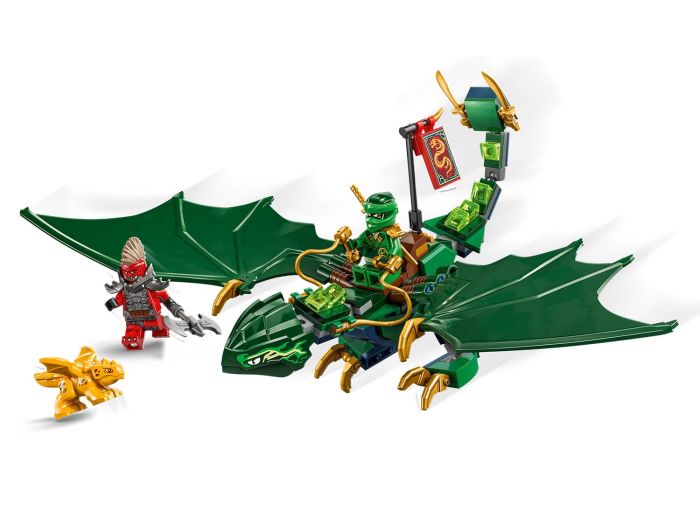 - Posable NINJAGO® dragon – A buildable model of Lloyd’s Green Forest Dragon with a posable tail, neck, legs, hands and large wings, plus a saddle so a minifigure character can ride on its back