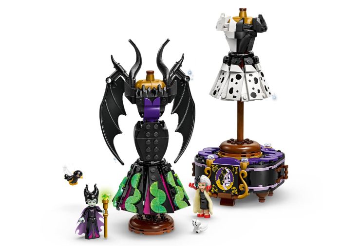 - Fun building toy – 2 buildable dresses, 2 dress stands and a display stand with space for the Maleficent and Cruella De Vil LEGO® ǀ Disney minidoll characters and 2 LEGO ǀ Disney animal characters