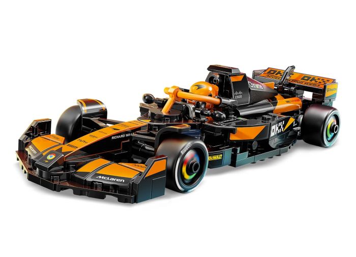 - Authentic McLaren F1® Team details – A McLaren F1 car with details from the real-life 2024 version, including a halo bar, rear wing, sponsor stickers and wider rear tires imprinted with “Pirelli”