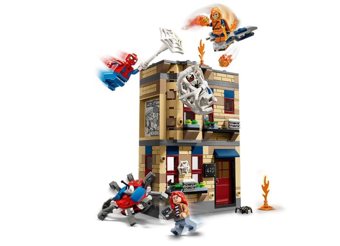 - LEGO® ǀ Marvel Spider-Man accessories – The 2-level apartment contains a kitchen, study and bedroom and features a giant, flexible, minifigure-trapping web attached to the outside of the building
