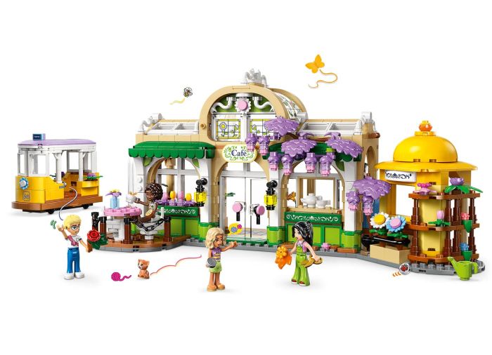 - A building kit blooming with friendship – Let kids’ imaginations grow with the LEGO® Friends Plant Café & Flower Shop for girls and boys, with a flower-shop-and-café scene and a streetcar toy
