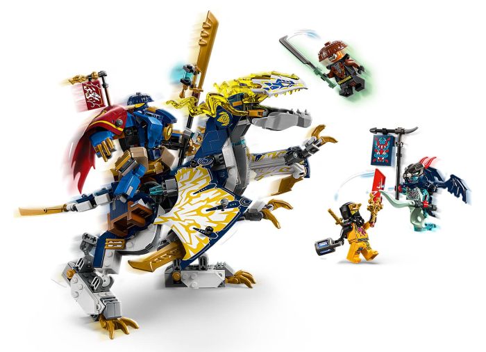 Rogue’s Mech Dragon Rider (71843) combo ninja toy lets boys and girls aged 8 plus enact tales from season 3 of the NINJAGO® Dragons Rising TV show. Kids can separately play with a mech toy and the first-ever NINJAGO robot dragon toy before combining them into the awesome Rogue’s Mech Dragon Rider.