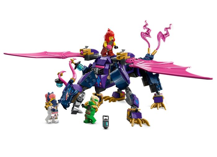 Rogue’s Mech Dragon Rider (71843) combo ninja toy lets boys and girls aged 8 plus enact tales from season 3 of the NINJAGO® Dragons Rising TV show. Kids can separately play with a mech toy and the first-ever NINJAGO robot dragon toy before combining them into the awesome Rogue’s Mech Dragon Rider.