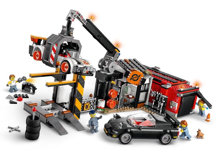 - What’s in the box? – This LEGO® junkyard toy includes everything kids need to build a toy scrapyard with a claw crane, crusher, office building, 2 cars and 4 worker minifigures