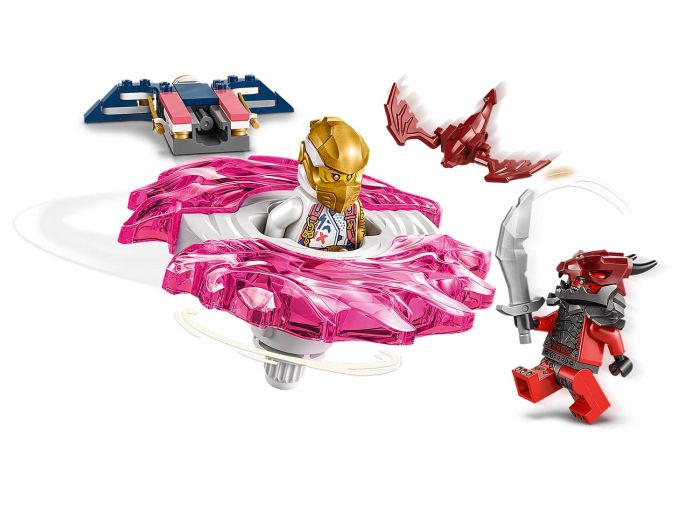 The small LEGO set also comes with 2 minifigures: Sora , who rides inside the dragon Spinjitzu spinner and has a sword accessory, a villainous Dragonian Warrior with his own sword accessory, plus a small dragon critter model. Kids can enjoy great role-play action as they stage good vs. evil battles with these popular NINJAGO characters.