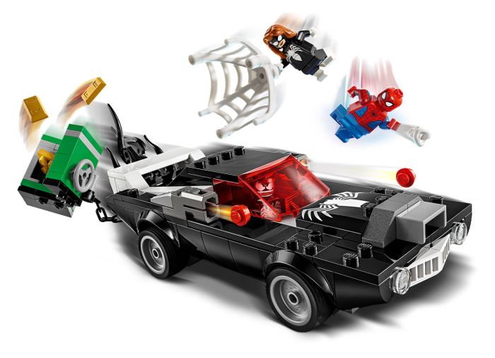 - Venom car chase – The Venom minifigure can be placed inside the car by removing his 2 lower tentacles, which can be used to further Venomize the car