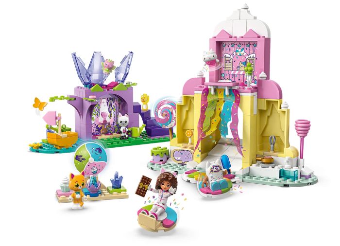The creative playset features 2 movie locations and many LEGO figures, including Gabby, Pandy Paws and Kitty Fairy. Sweet Treat Mountain immerses little ones into a magical world of sugary treats. The characters can slide through the colorful waterfall riding on donut floats. Kitty Garden is a fantastical retreat where Kitty Fairy sits on her crystal flower throne and gems are hidden for kids to find. Colorful pictorial instructions, a large Starter Brick and separate bags with 1 model per bag make the creative experience fast and fun for little builders.