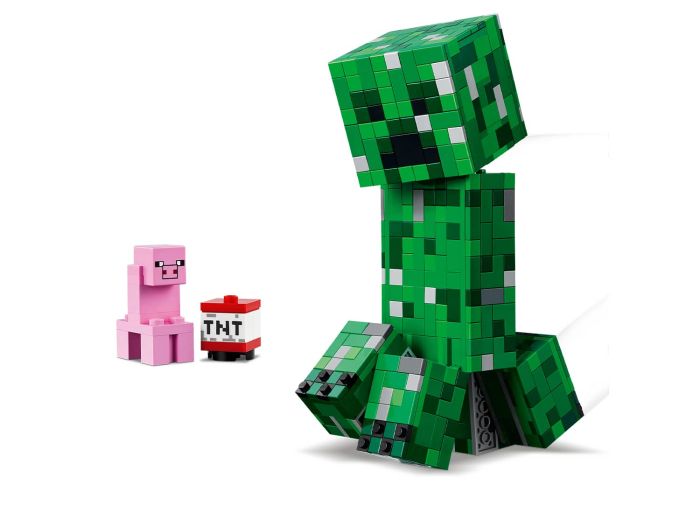 - A hidden surprise – The front of the LEGO® Minecraft® Creeper™ figure’s head detaches to reveal an interior space containing a first-version Creeper minifigure and a TNT element