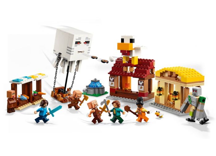 - Video game LEGO® set – When piglins launch missiles from their ghast balloon, causing the fountain to ‘explode’, kids must defend the villagers and Steve's fried chicken restaurant and crafting shack